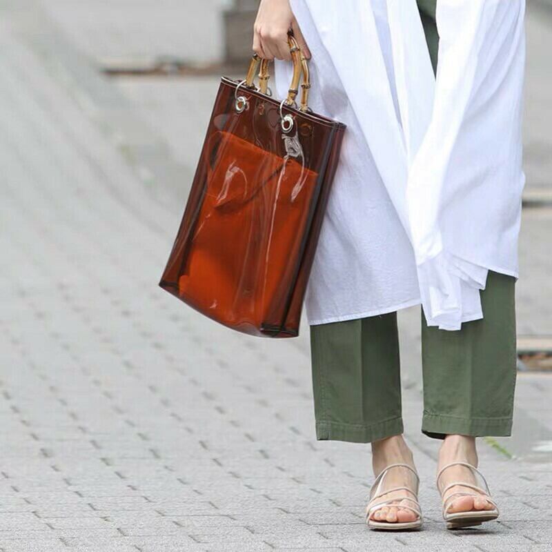 バンブーハンドル がとてもかわいいクリアバッグ です❤️