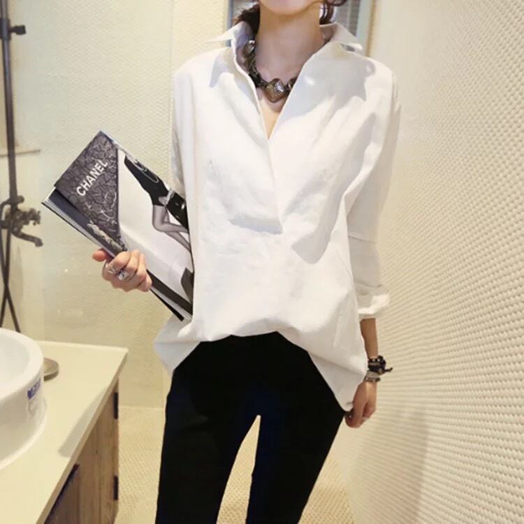 【即納】Vネック前後アシンメトリーシャツ