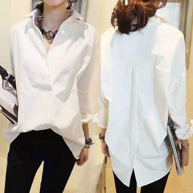 バックはボタンで開閉できて、細身でフリルが上品で大人可愛いく、上品でフェミニンな女性を演出できるVネックブラウス・シャツです❤️