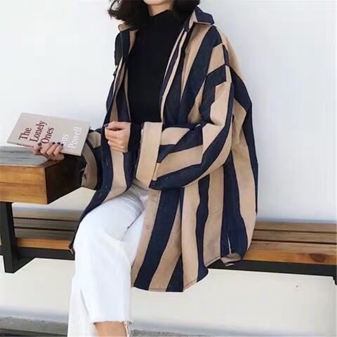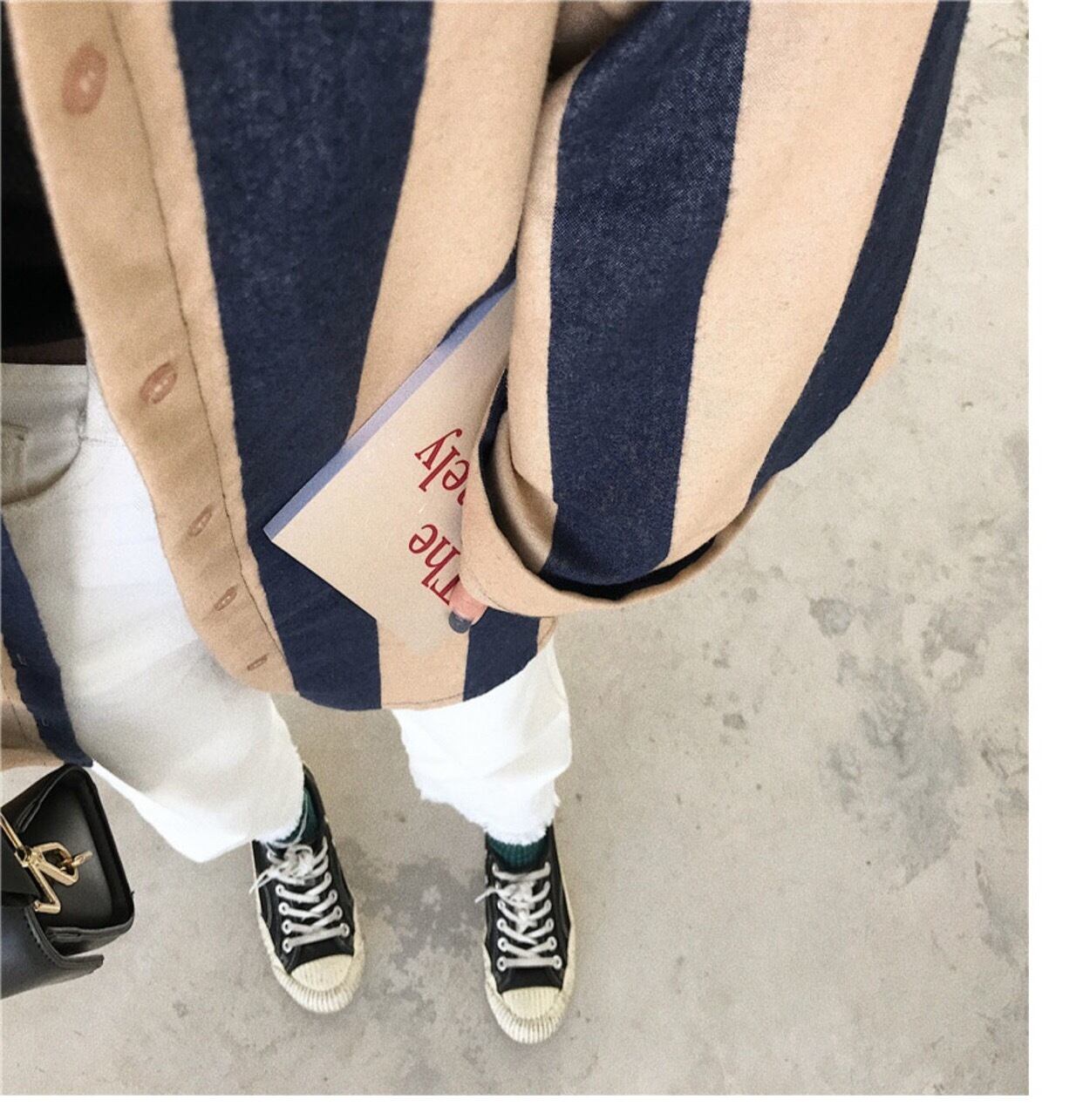 ストライプのデザインと、ゆったりめのシルエットがとてもかわいいシャツです❤️