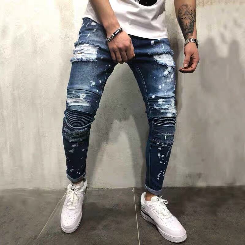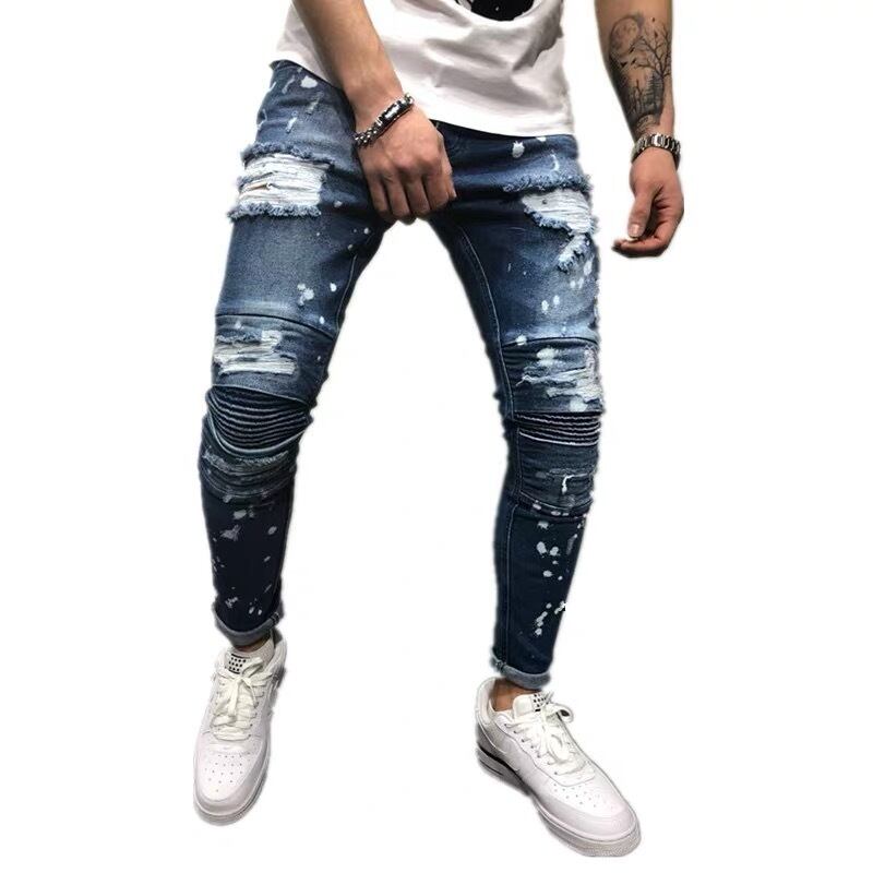 【即納】バイカーペイントダメージストレッチパンツ<デニムタイプ>