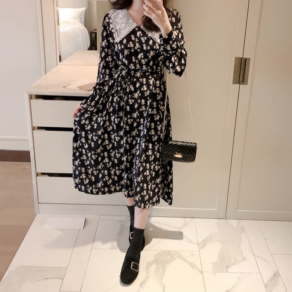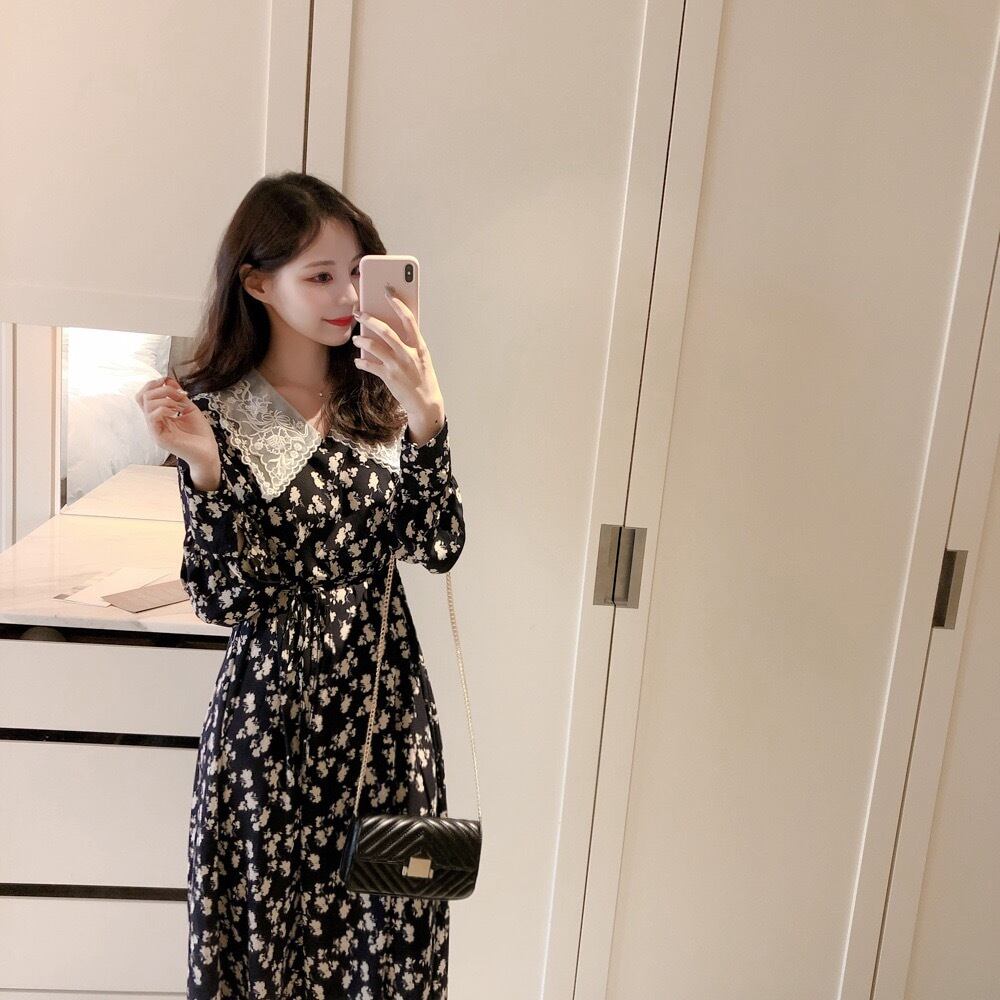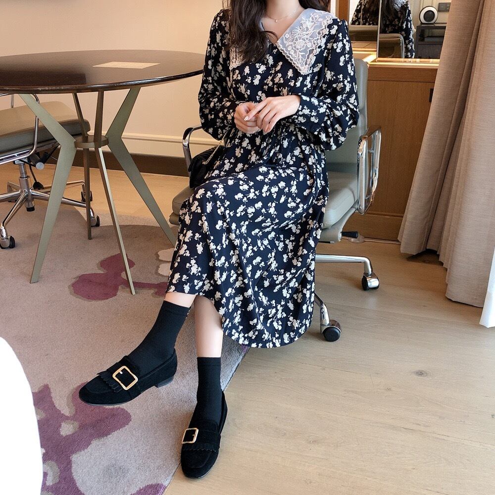 【即納】ネック レース花柄ロングワンピース
