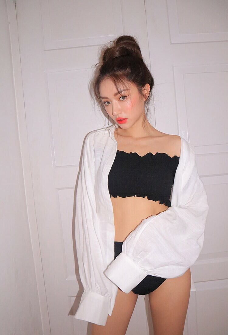 総シャーリングのキュートなチューブトップタイプのトレンド感満載のビキニです❤️
