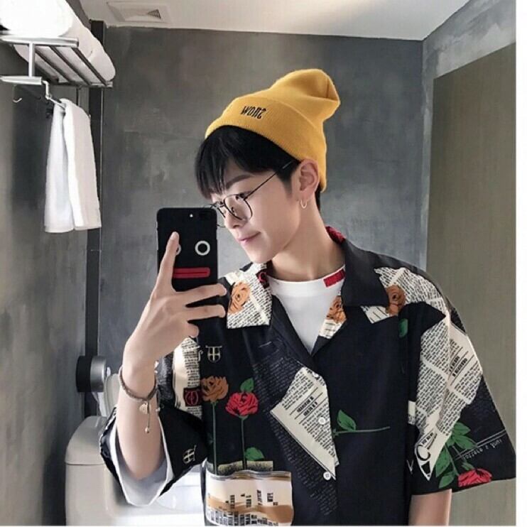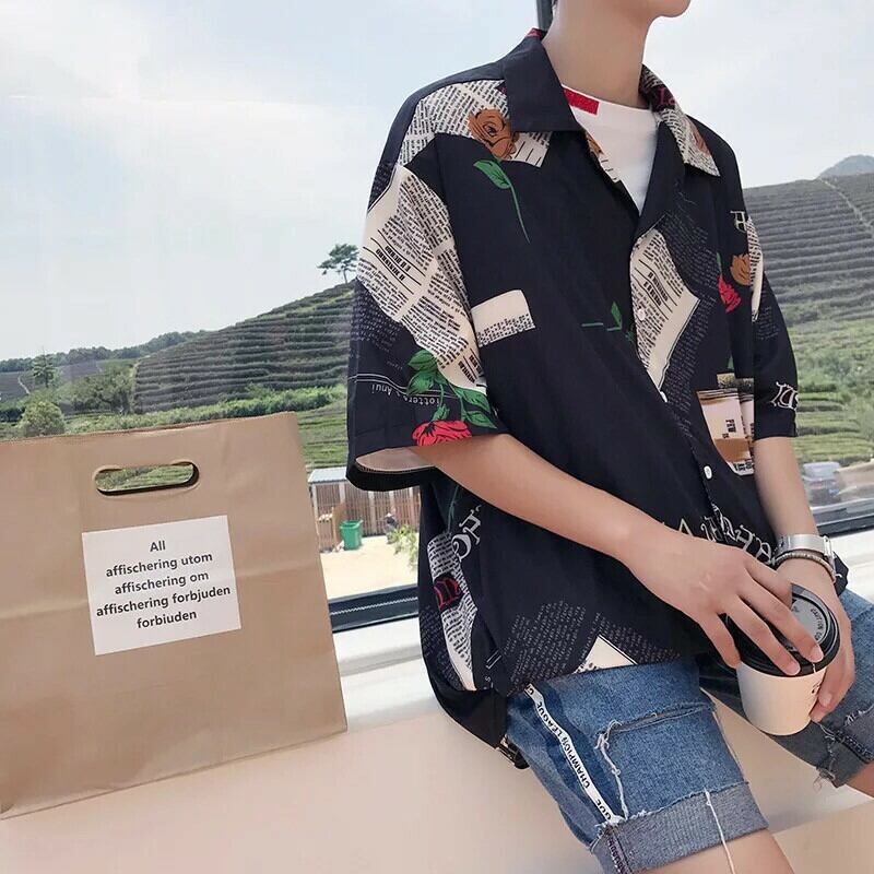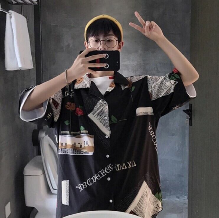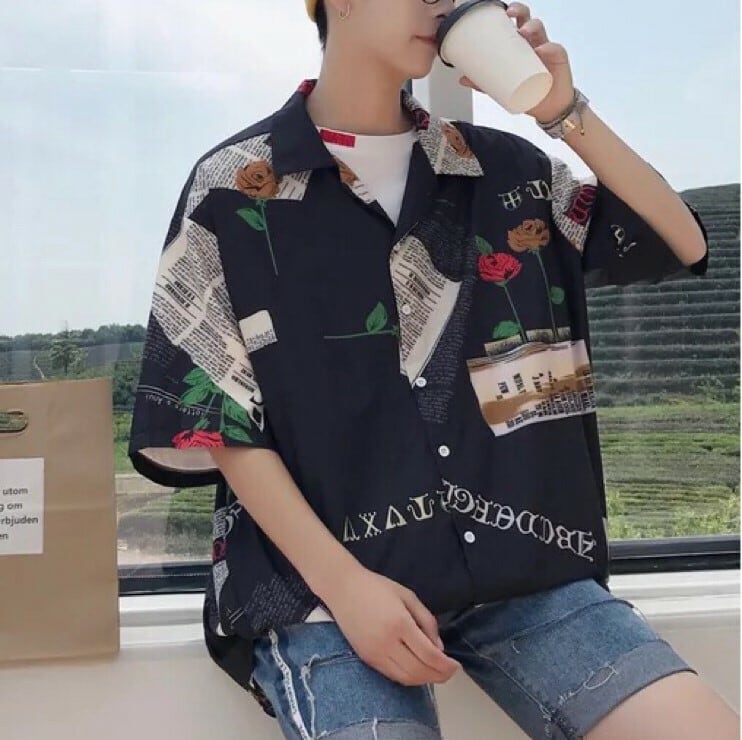 【即納】 古着風 ビッグシルエット 開襟 シャツ ブラック