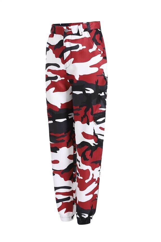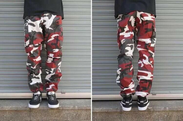 【即納】迷彩柄カーゴパンツ レッド