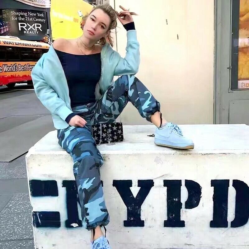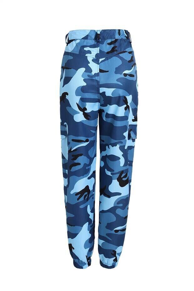 【即納】迷彩柄カーゴパンツ ブルー