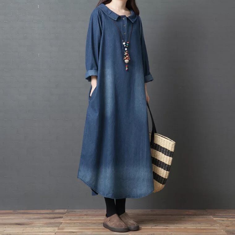 デニム生地がおしゃれでがかわいいゆったりめのワンピースです!!