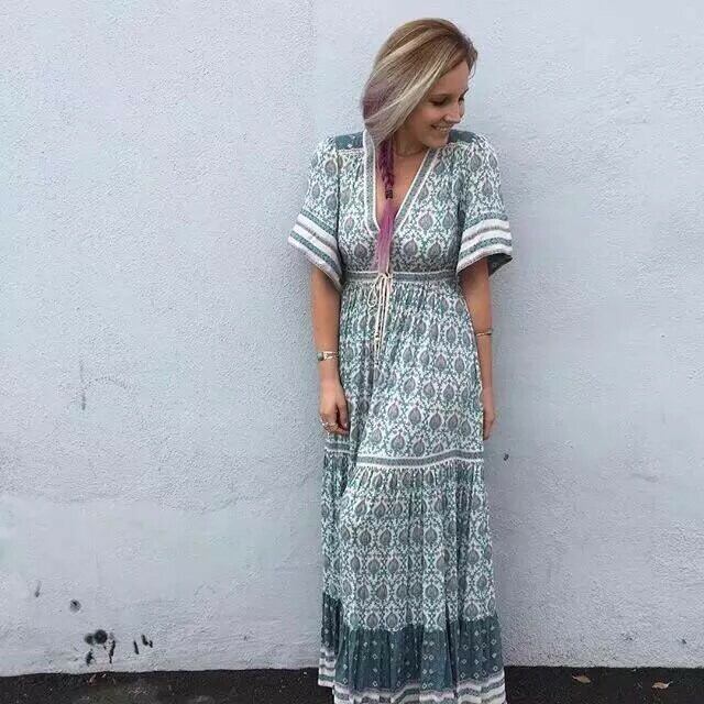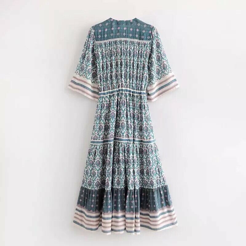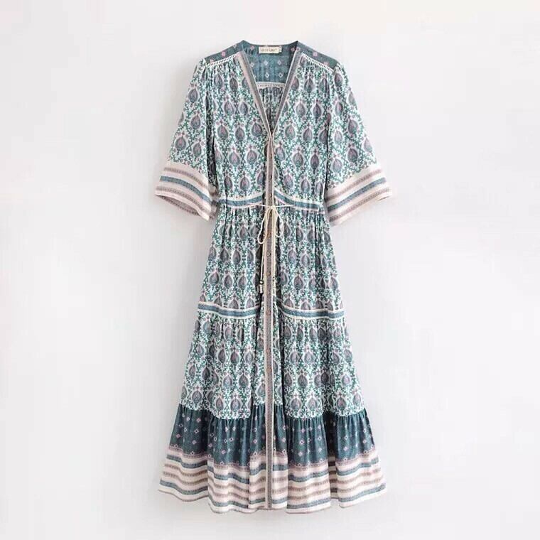 【即納】前開き ボヘミアン ロングワンピース
