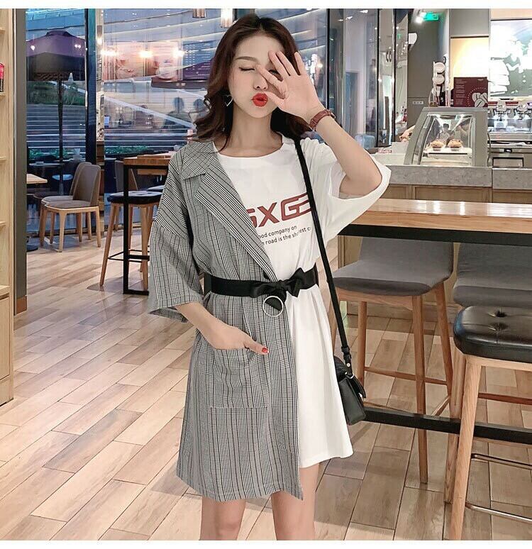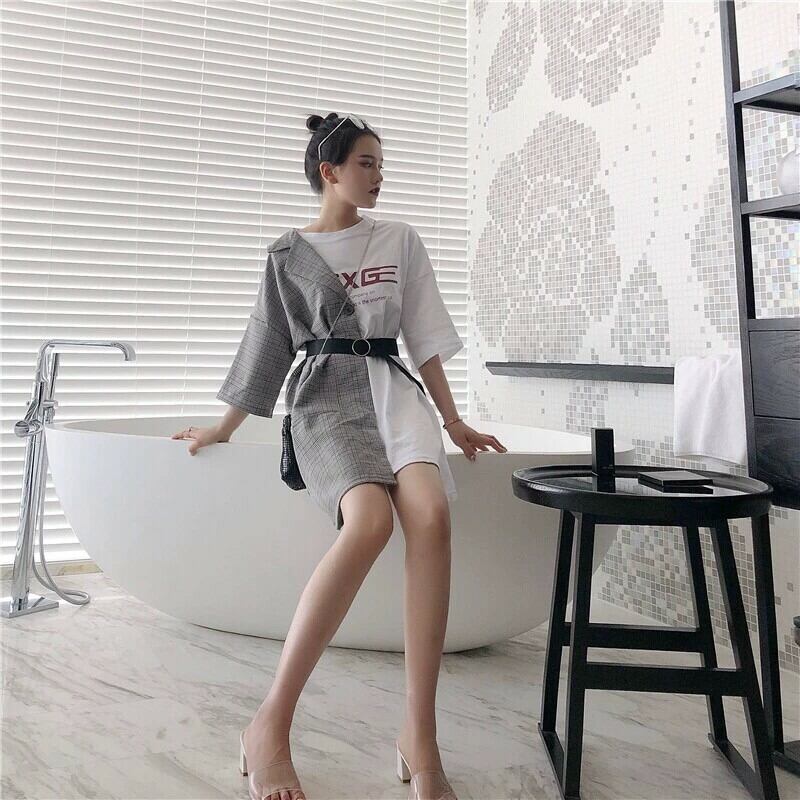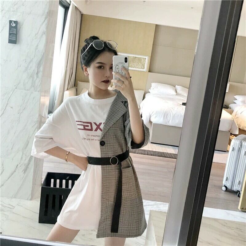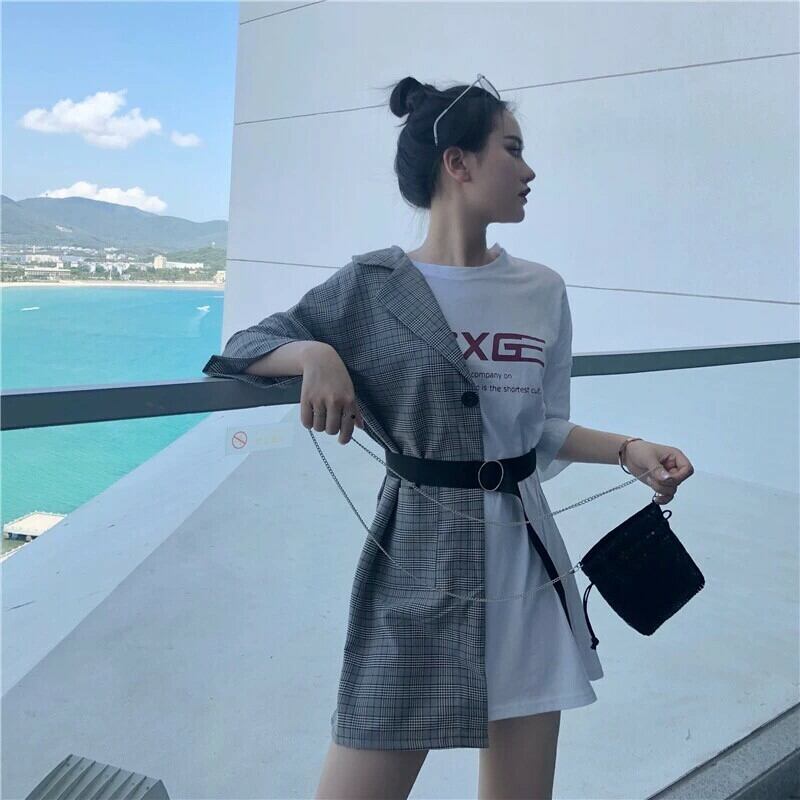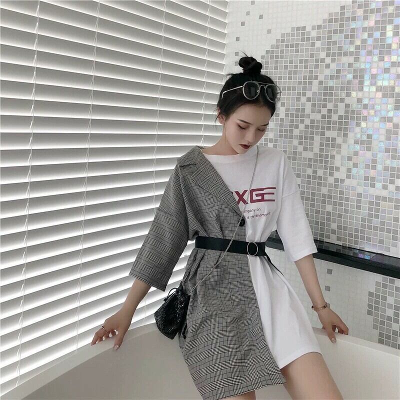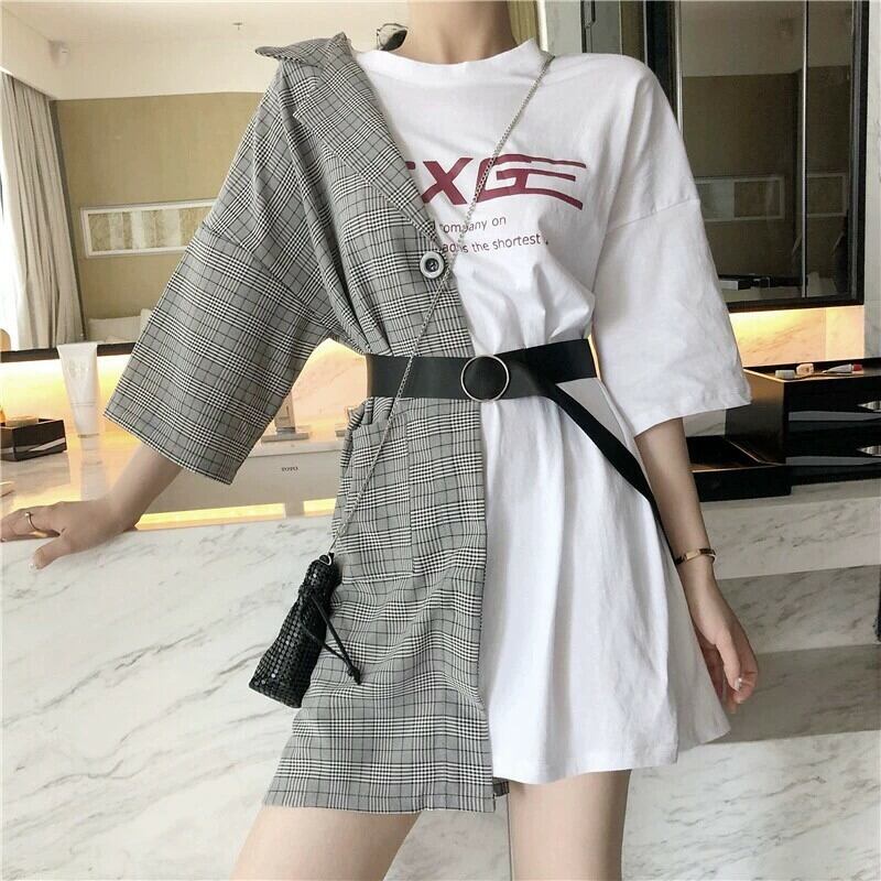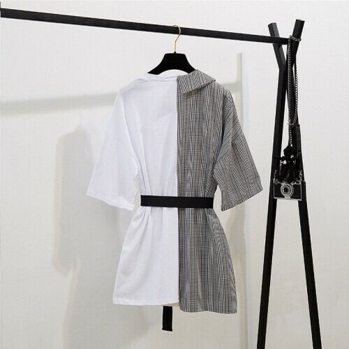 チェック柄とアシンメトリーのシャツが個性的で、大人気の 韓国ファッション オルチャン 系好きにはたまらない1枚❤️