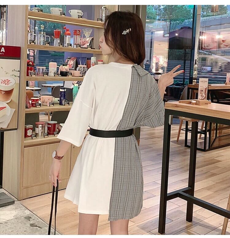 【即納】チェック 切り替え アシンメトリー シャツ ワンピース