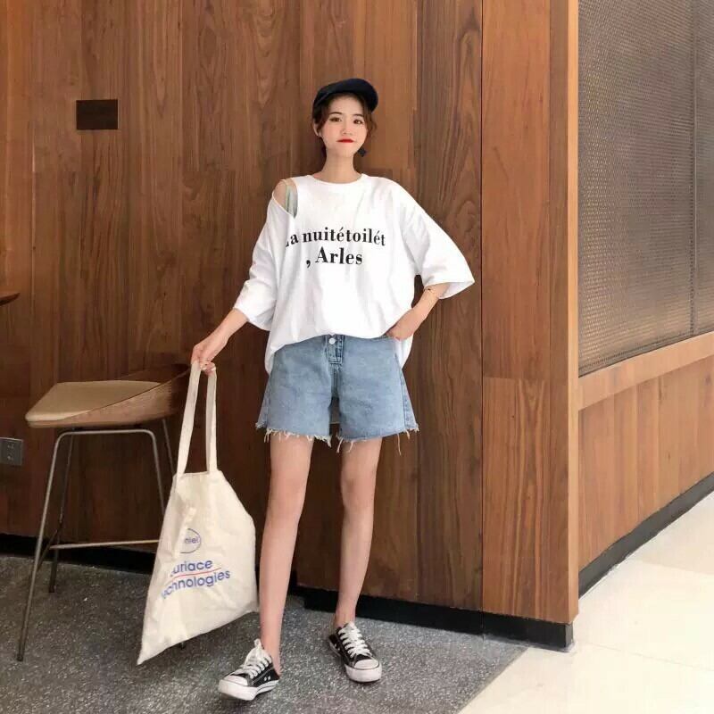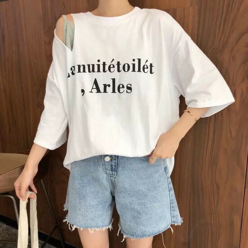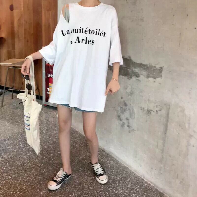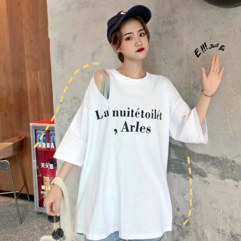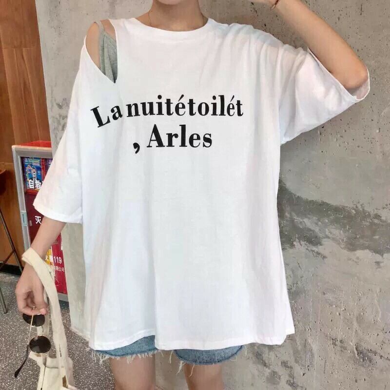 【即納】ビッグシルエット カットショルダー Tシャツ インナー付き